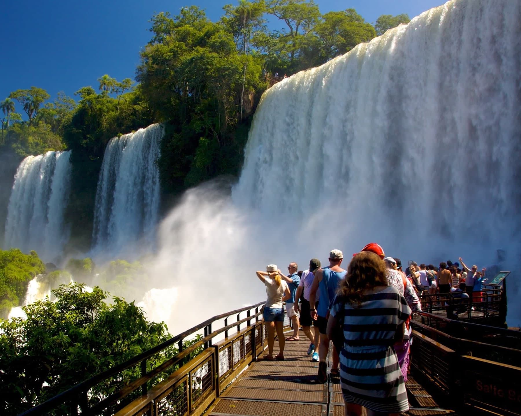 Las Cataratas del Iguazú, una de las Siete Maravillas Naturales del Mundo, son un sistema de 275 saltos de agua situados en la frontera entre Argentina (Misiones) y Brasil (Paraná). Este sitio Patrimonio de la Humanidad, cuyo nombre significa "aguas grandes" en guaraní, destaca por la "Garganta del Diablo" (80m de altura) y una rica biodiversidad selvática.